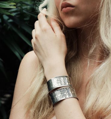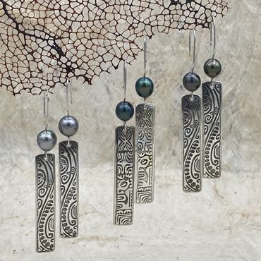 All of my jewelry is Polynesian-inspired and handcrafted using sterling silver and a long acid-etching process. I use authentic tapa designs, vintage Taitian textile prints, tattoo art, with accents of blacklip mother of pearl shell and Tahitian pearls. Every piece is inspired by a lifetime of travels to the South Pacific and deep reverence and respect for the customs and traditions of the Islands. Hence the name…. Moni Tapu “Sacred Silver”